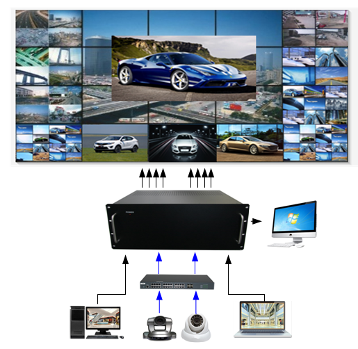 高清數(shù)字解碼矩陣自帶內(nèi)拼接、分割、開窗、漫游功能,廣泛應(yīng)用于道路交通、平安智慧城市監(jiān)控、軍隊、工廠、學(xué)校、銀行、商場、大型公共場所、森林防火、智能樓宇等各類場合的視頻監(jiān)控中心。實現(xiàn)前端的網(wǎng)絡(luò)視頻信號的解碼,及對大屏顯示的控制。